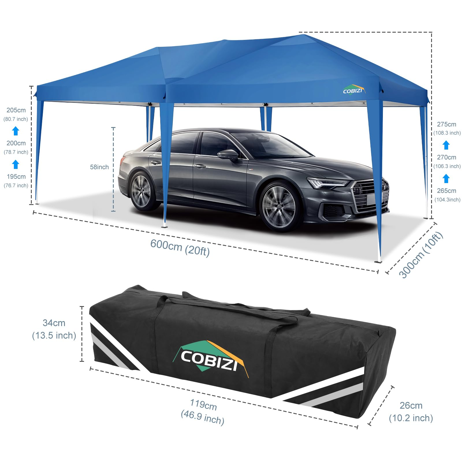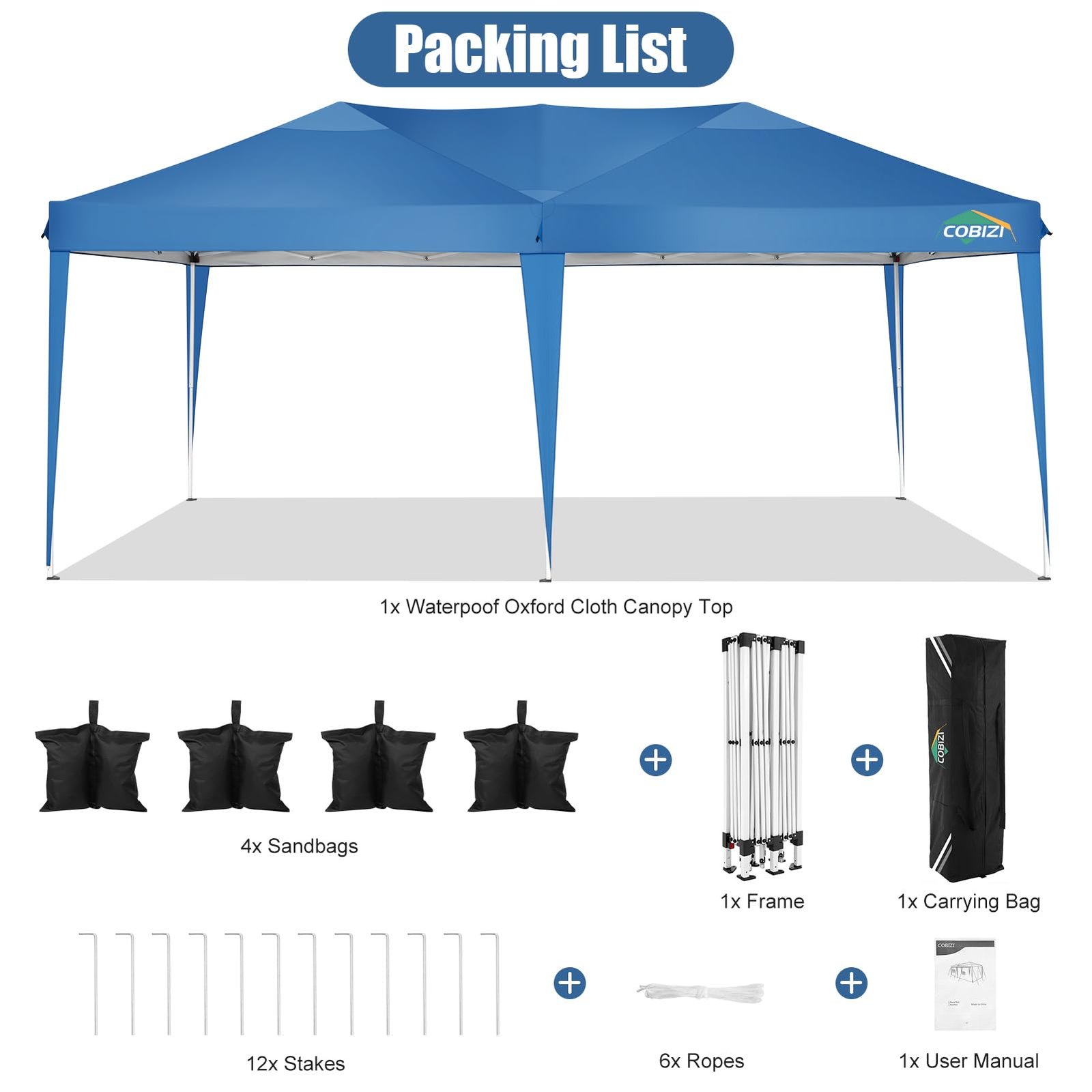 COBIZI 10’x20′ Pop up Canopy,Waterproof Outdoor Commercial Instant Tent,for Parties Beach Camping Event Shelter Wedding,Blue