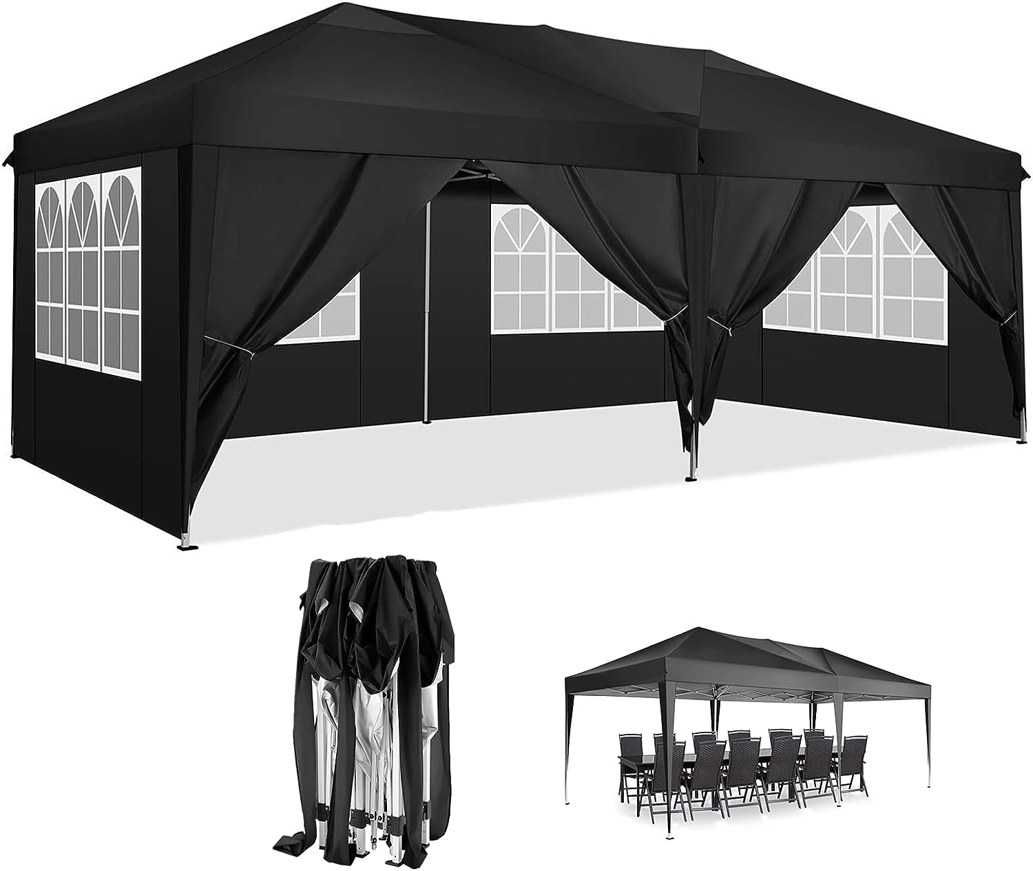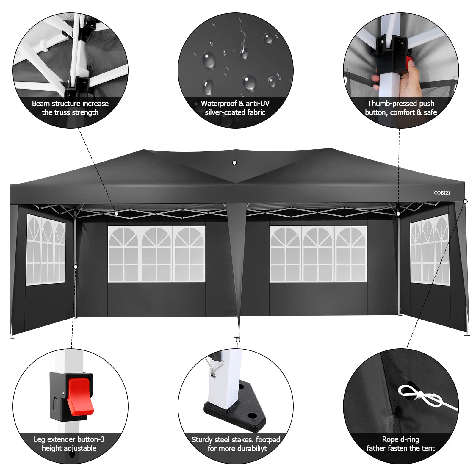 COBIZI 10×20 Pop Up Canopy with 6 Sidewalls,Waterproof Outdoor Commercial Instant Tent,for Parties Beach Camping Event Shelter Wedding,Black