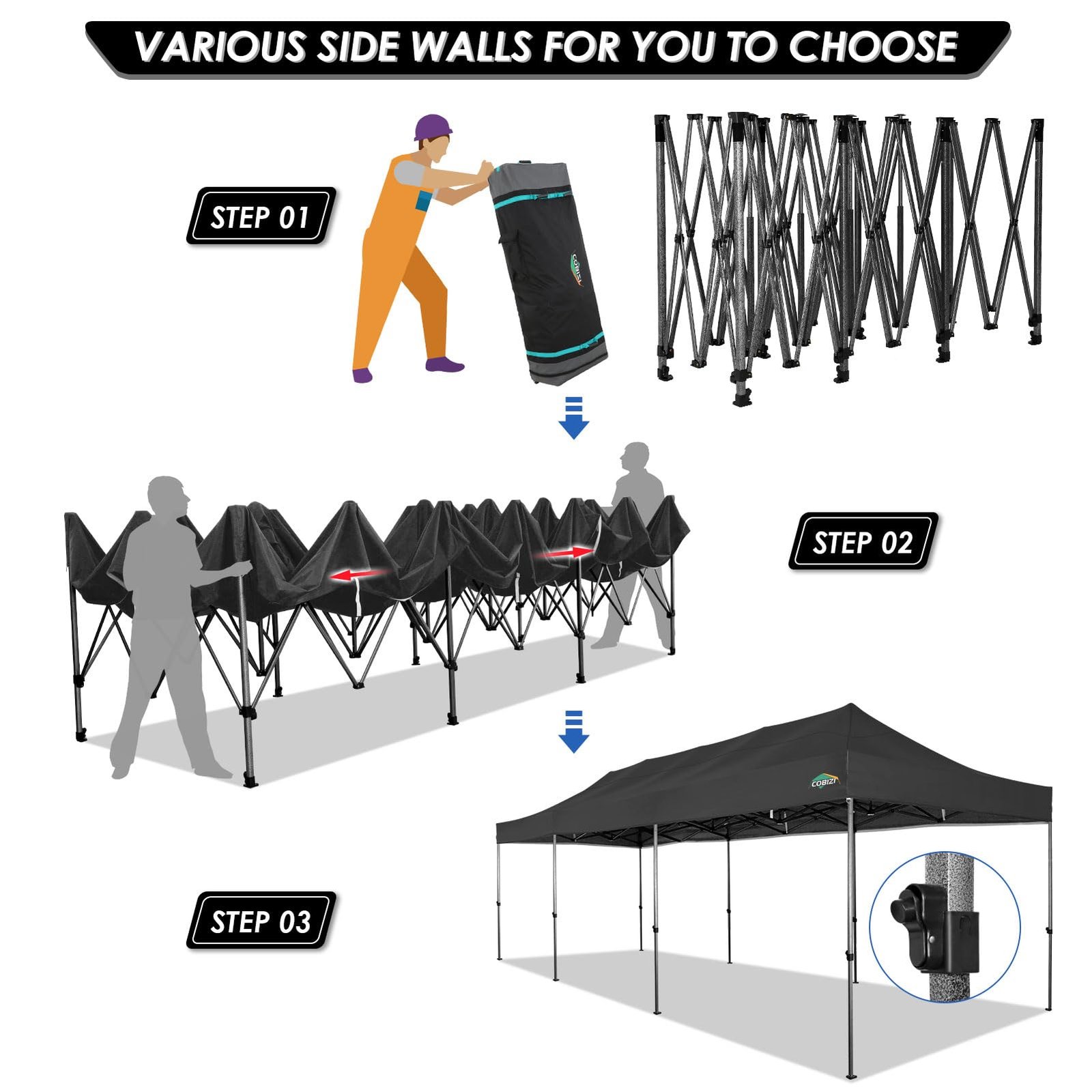 COBIZI 10’x30′ Canopy Heavy Duty Pop Up Canopy Tent Outdoor Gazebo Shelter Large Tent for Party Camping