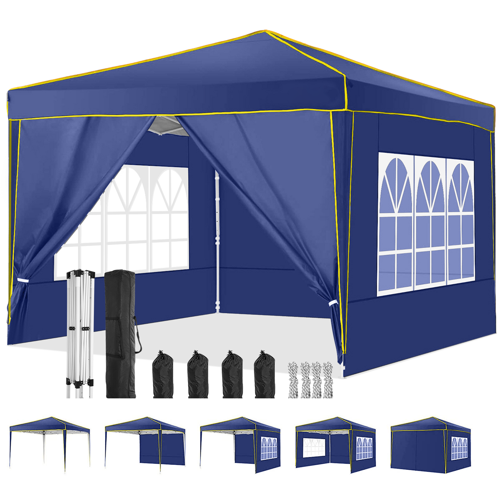 【Package Includes and Service】:10 x 10 pop up canopy tent + 4 sidewalls + 1x bag + 4x Stakes + 4x ropes+ 4x sandbags. If you have any questions, please contact us.