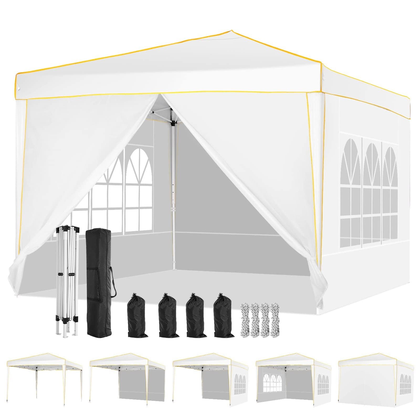 Hoteel Pop up Canopy Tent 10×10 Commercial Instant Canopy with 4 Sidewalls & Carry Bag 4 Stakes & Ropes & Sandbags Portable Tent for Parties Beach Camping Party Event Shelter Sun Shade White