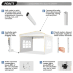 【4 Sidewalls + Sandbags】: instant canopy has 4 sidewalls–2 wall panels with church windows for light in; 2 door panel with zipper for for easy entrance. Sidewalls are removable, you can freely switch the positions and choose to set or not for different use. 4 sandbag and stakes & 4 ropes enchance the stablity in windy and stormy days. More sturdy!
