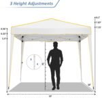 【Upgraded 3-Height Settings】Three different height settings allow you to choose the height that meets your needs. With High, Medium or Low height setting: 97.2″-100.8″-104.4″. Straight leg design provide 100 square feet of shadow area. Perfect for outdoor event shelter or commercial activities in farmers market, backyard,camping, wedding, festivals, beach, sports events, family parties, BBQ.