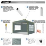 【4 Sidewalls + Sandbags】: instant canopy has 4 sidewalls–2 wall panels with church windows for light in; 2 door panel with zipper for for easy entrance. Sidewalls are removable, you can freely switch the positions and choose to set or not for different use. 4 sandbag and stakes & 4 ropes enchance the stablity in windy and stormy days. More sturdy!