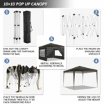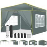 COBIZI Pop up Canopy Tent 10×10 Commercial Instant Canopy with 4 Sidewalls & Carry Bag 4 Stakes & Ropes & Sandbags Portable Tent for Parties Beach Camping Party Event Shelter Sun Shade