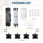 - 【Portable and Compact】:Offering 100 square feet of shade, this 10×10 canopy can accommodate up to 10 people. When packed, it measures 45.45″ x 8.66″ x 10.24″, fitting easily in most car trunks.