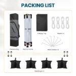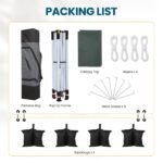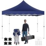 - Portable and Compact:Offering 100 square feet of shade, this 10×10 canopy can accommodate up to 10 people. When packed, it measures 45.45″ x 8.66″ x 10.24″, fitting easily in most car trunks.