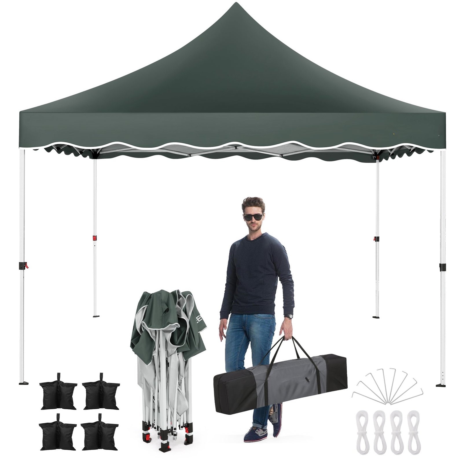 - Easy Setup and Storage:Adjustable to three heights—114 inches, 118 inches, and 122 inches—10 x 10 pop up canopy tent can be set up by 1-2 people without tools. Detailed installation videos and instructions are provided. Contact us if you encounter any issues during setup.