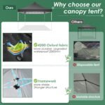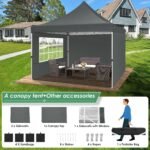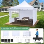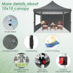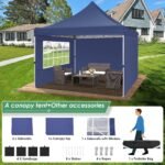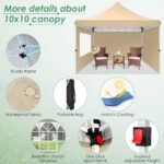 - 【Quick & Easy to Set up & Take Down】10×10 ez up canopy only take one people to set it up in minutes, It is easy to install without any tools. The outdoor canopy with detailed installation videos and manual, You can adjust heavy duty canopy in 3 different heights (116″ / 120″ / 124″) with thumb button, allowing you to adjust the height easily according to your needs.