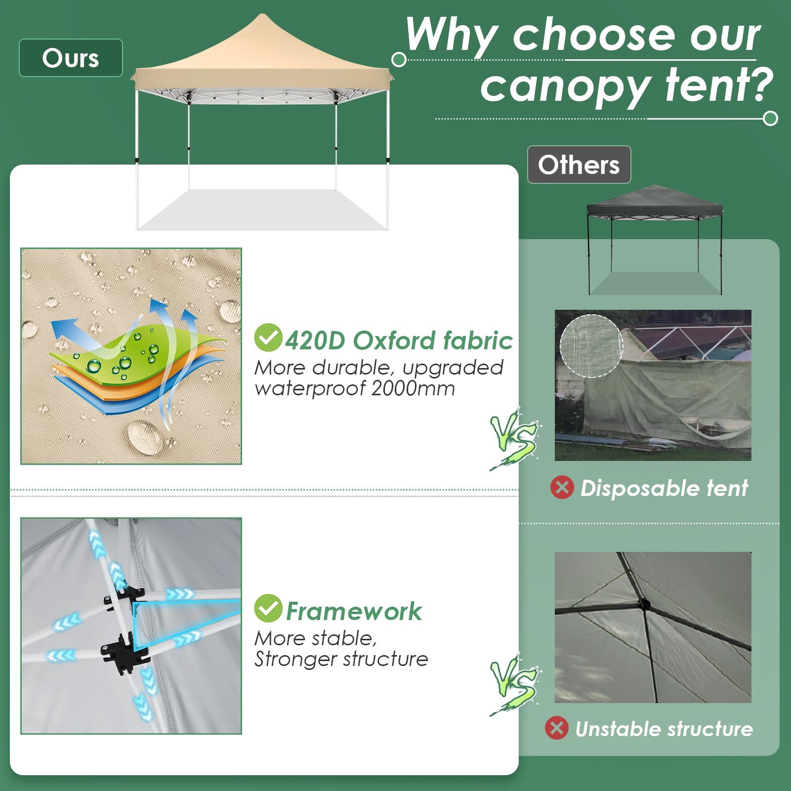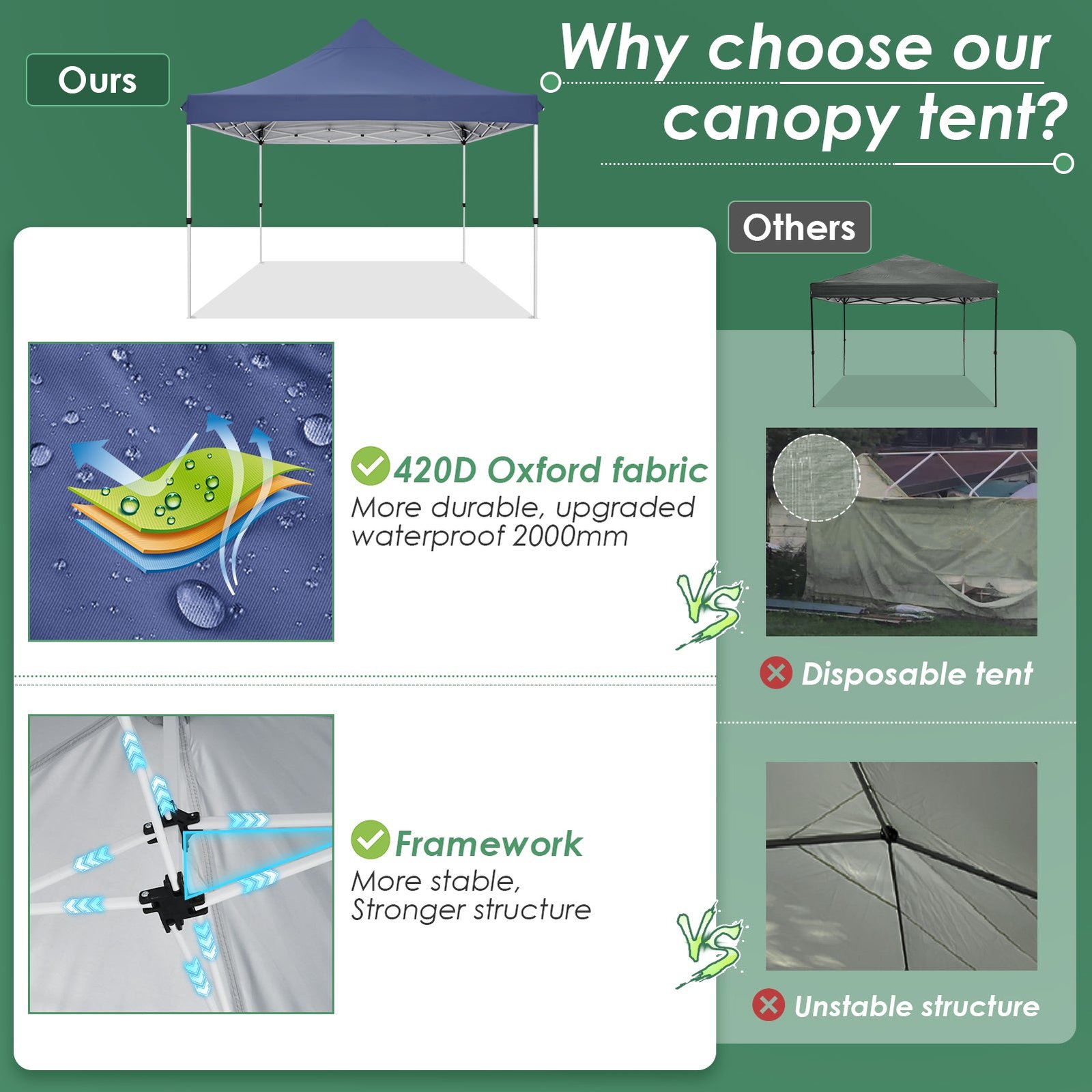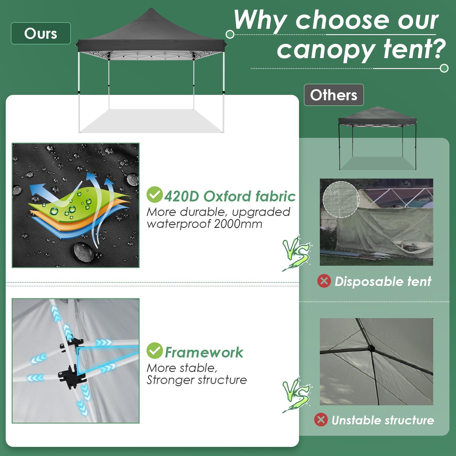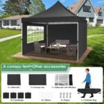 - 【Super Waterproof and Breathable】10×10 Pop Up Canopy with sidewalls is made of high-quality waterproof materials. Seams are fully sealed to prevent water leakage, 100% waterproof, 10×10 outdoor canopy also has good breathability, allowing moisture and sweat to be expelled, maintaining air circulation inside, and providing a comfortable user experience.