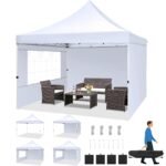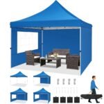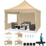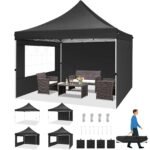 Hoteel 10×10 Pop Up Canopy Tent with 3 Sidewalls, Commercial Party Tent Ez Waterproof Outdoor Instant Gazebo UV 50+ Event Shelter, Garden Tents for Parties Camping with Sandbags & Cover Bag