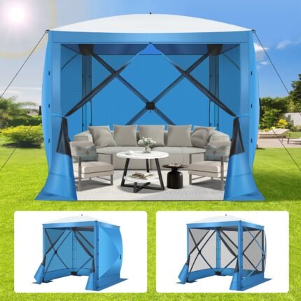 Hoteel 10x10ft Camping Gazebo Screen Tent, 5 Sided Pop-up Canopy Shelter with Mesh Windows, Portable Carry Bag, Stakes, Waterproof, UV 50+, Large Shade Tents for Outdoor Camping, Backyard, Gray,Blue,Khaki,Brown