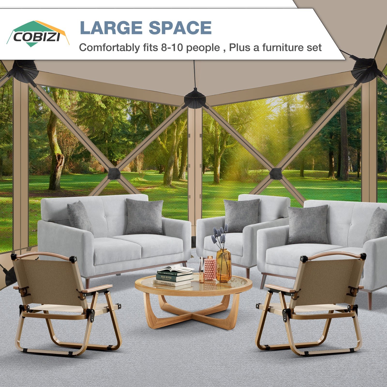 HOTEEL 12x12ft Pop-up Gazebo EZ Set-up Camping Canopy Tent with 6 Sides Mosquito Netting, Waterproof, UV Resistant, Portable Screen House Room, Outdoor Party Tent with Carry bag, Ground Spike, Khaki