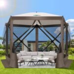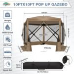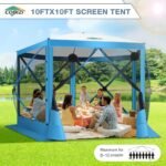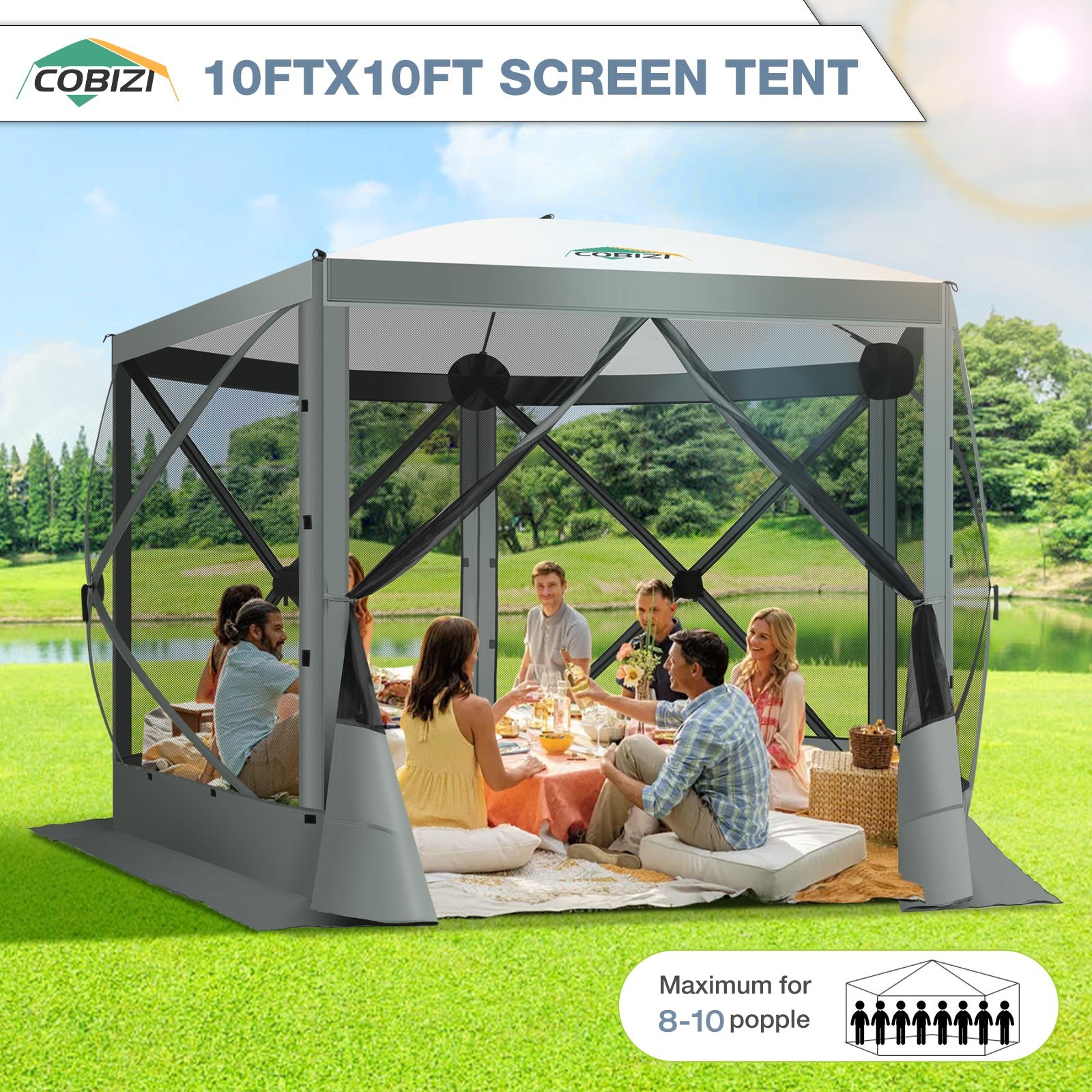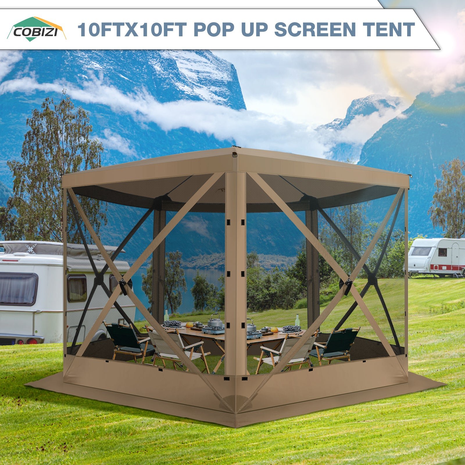 Hoteel 10x10ft Camping Gazebo Screen Tent, 5 Sided Pop-up Canopy Shelter with Mesh Windows, Portable Carry Bag, Stakes, Waterproof, UV 50+, Large Shade Tents for Outdoor Camping, Backyard, Gray,Blue,Khaki,Brown