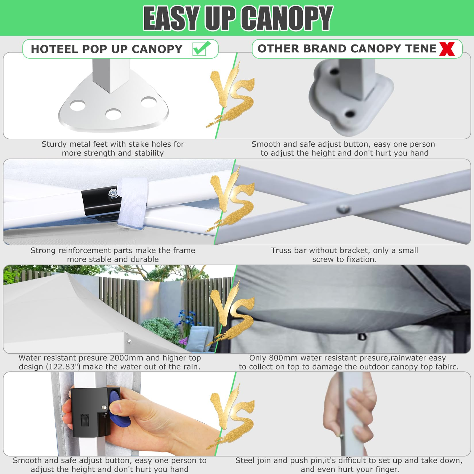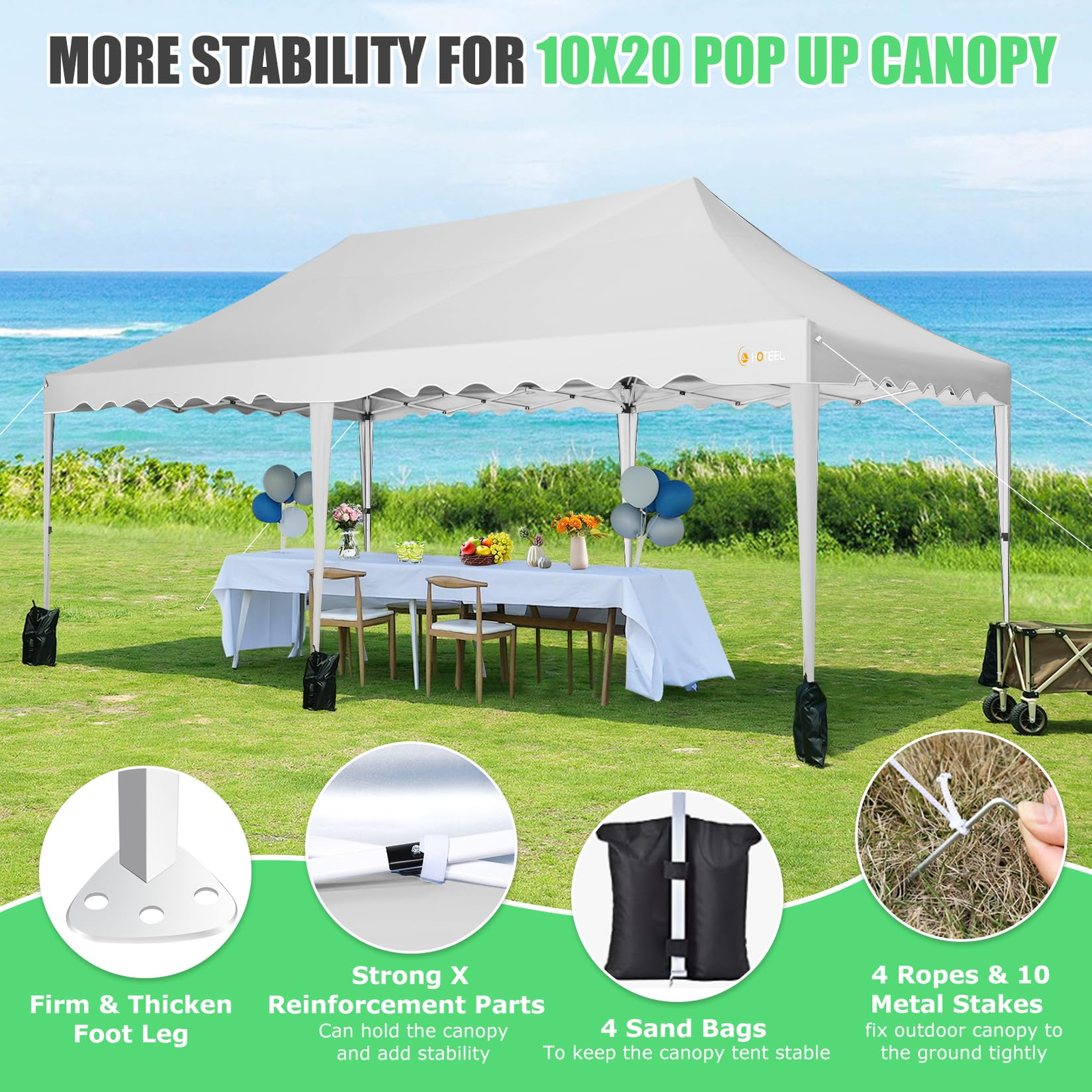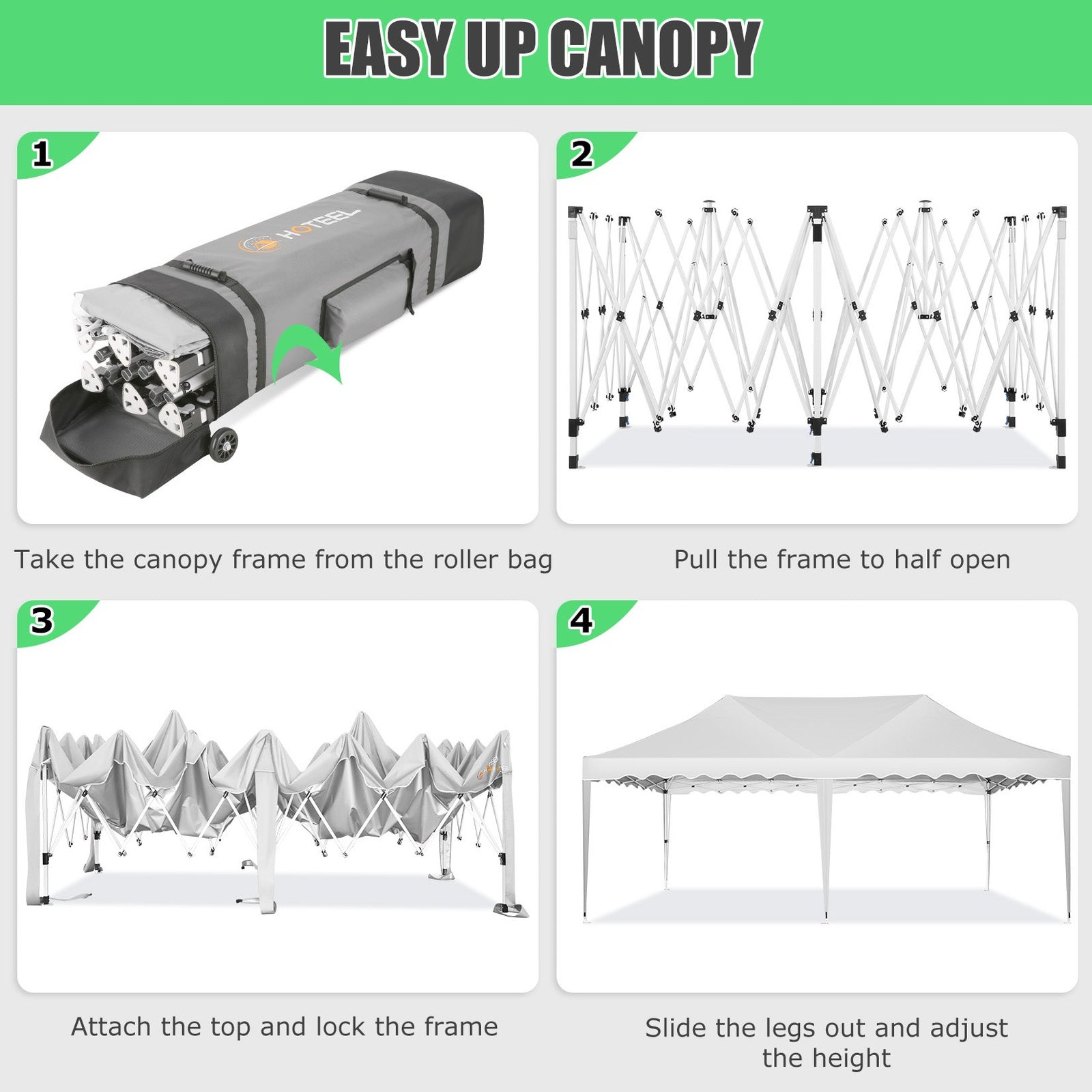 HOTEEL 10X20 Pop Up Canopy Tent, Outdoor Canopy with Wheeled Bag, for Parties, Wedding, Backyard, Camping, White