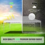 ✅【Waterproof and UV-Resistant】The outdoor canopy 10×20 top is made of 210D oxford cloth with PU-coating, UPF 50+, which blocks 99% of UV rays. The canopy gazebo tent with waterproof strip, stitching lines are all seam sealed, make this wedding tent 2000mm level waterproof and SPF 50+ UV sun protection to protect you from sun, wind and rain.