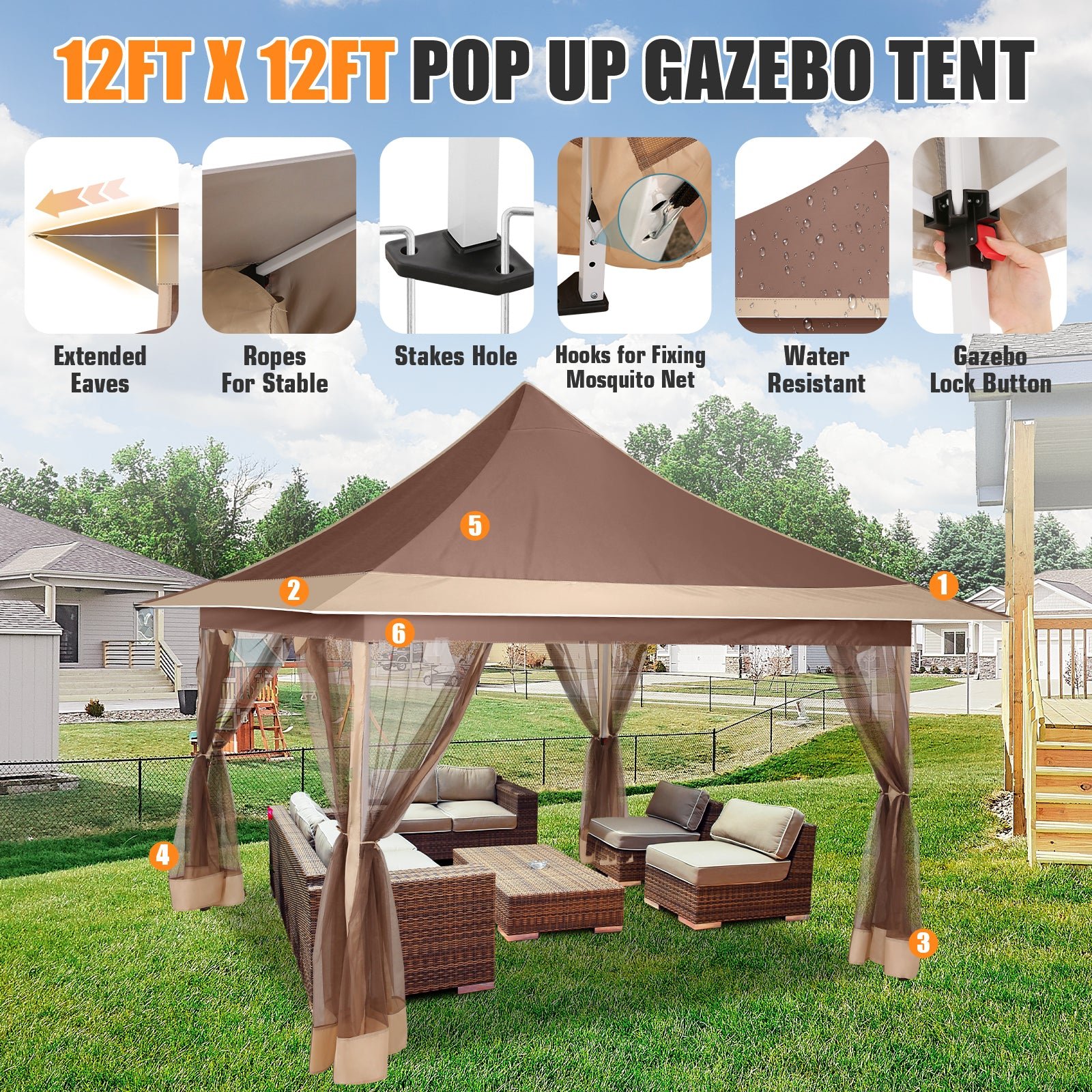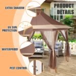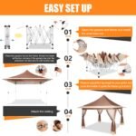 HOTEEL 12×12 Outdoor Waterproof Gazebo, Pop Up Canopy Tent with Adjustable Height, UV Protection & Mosquito Net, Ideal for Parties, Camping, Weddings, and Backyard Events,Brown