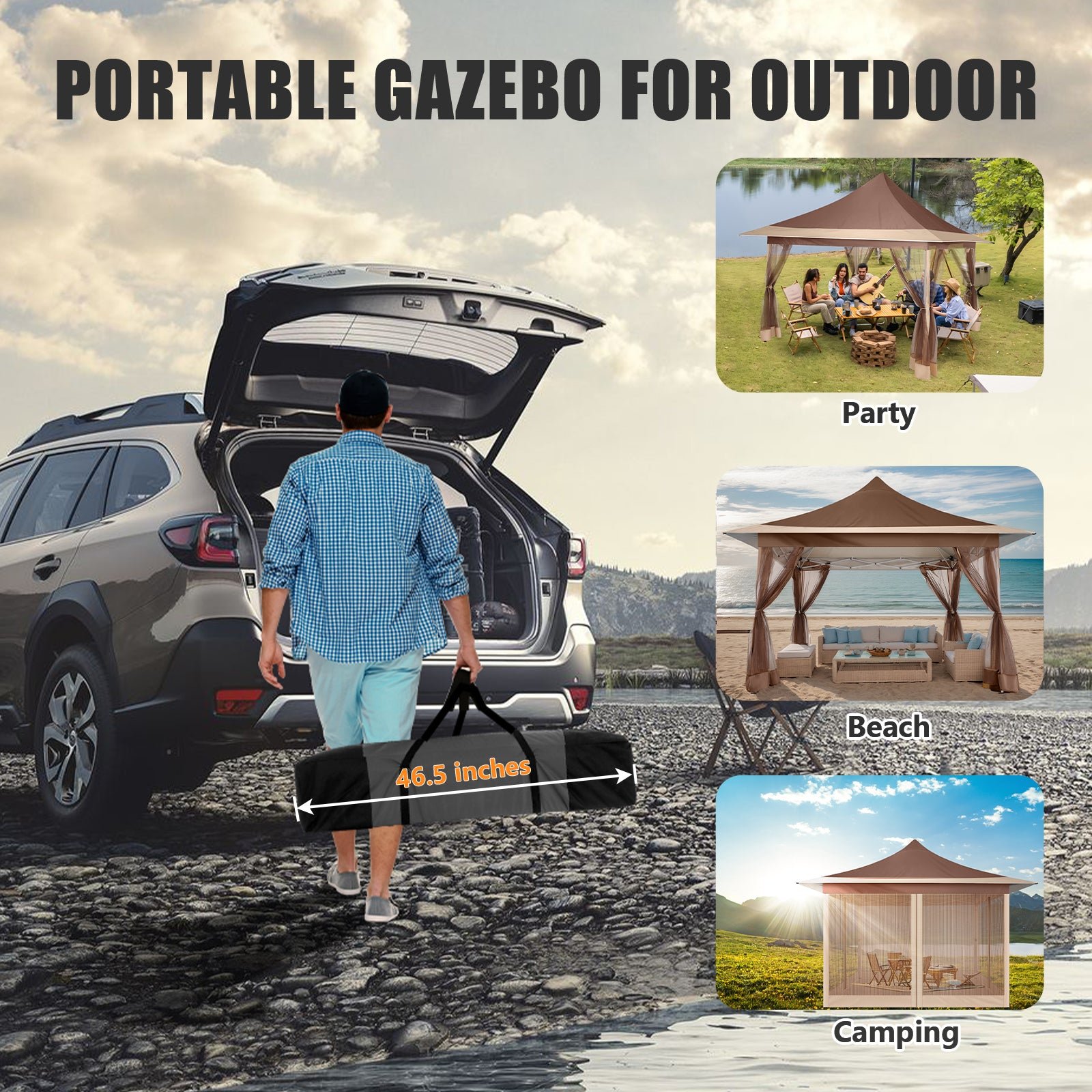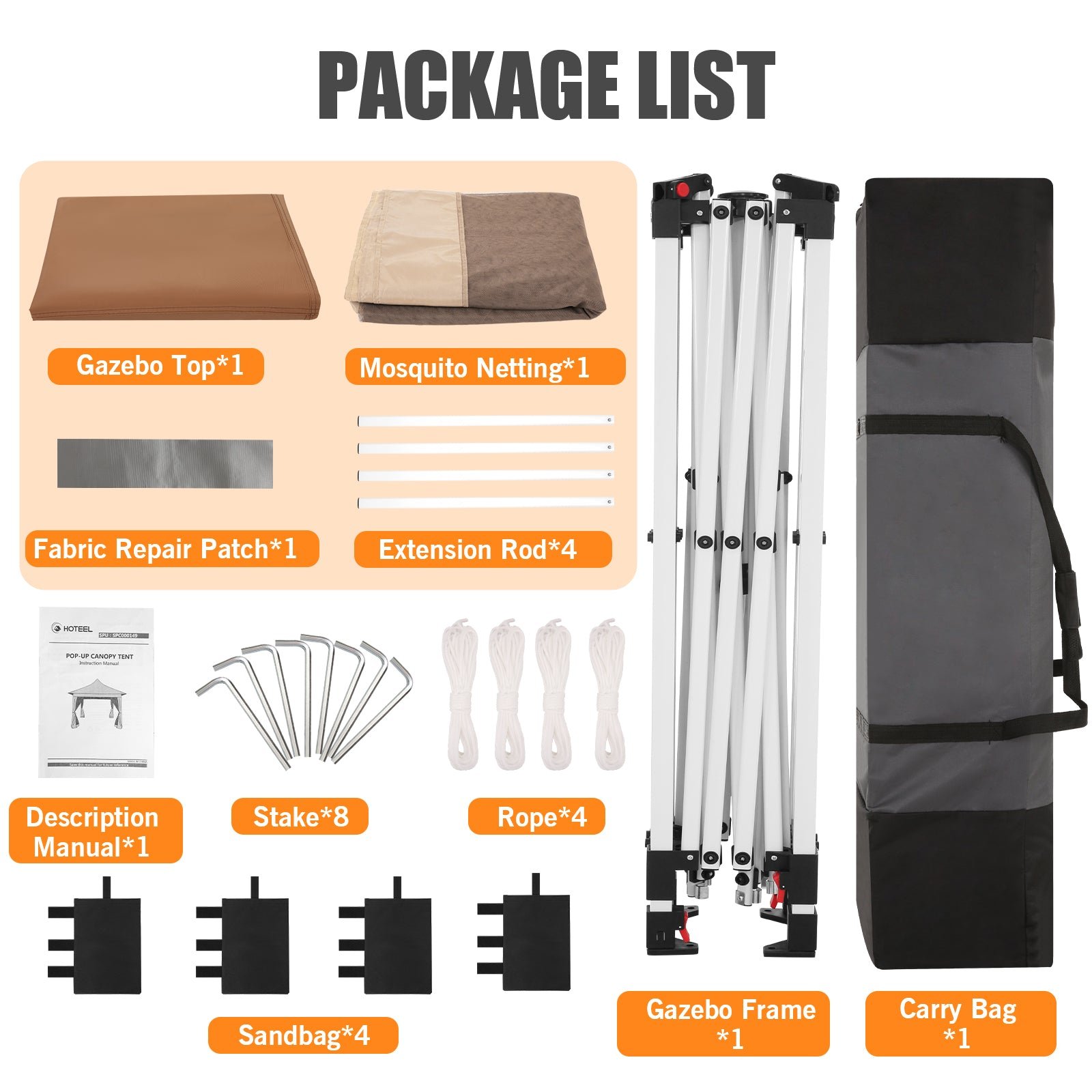 • HOTEEL will be your best choice. HOTEEL 12×12 pop up gazebo tent is the perfect place for friends and family to gather. This 12×12 gazebo canopy tent with 144 square Ft of shade, extends your living space from indoors to outdoors while creating a comfortable and inviting space for your family.