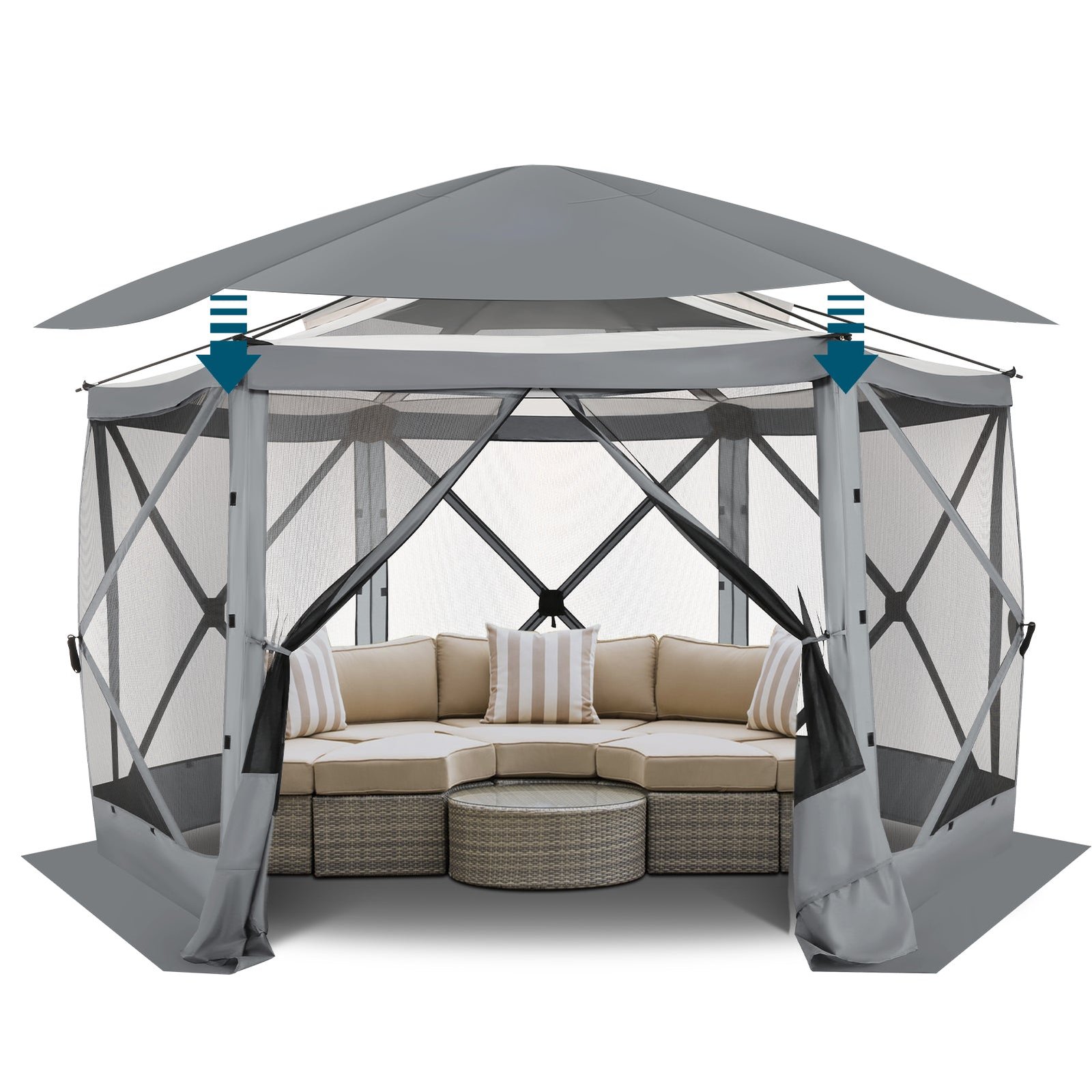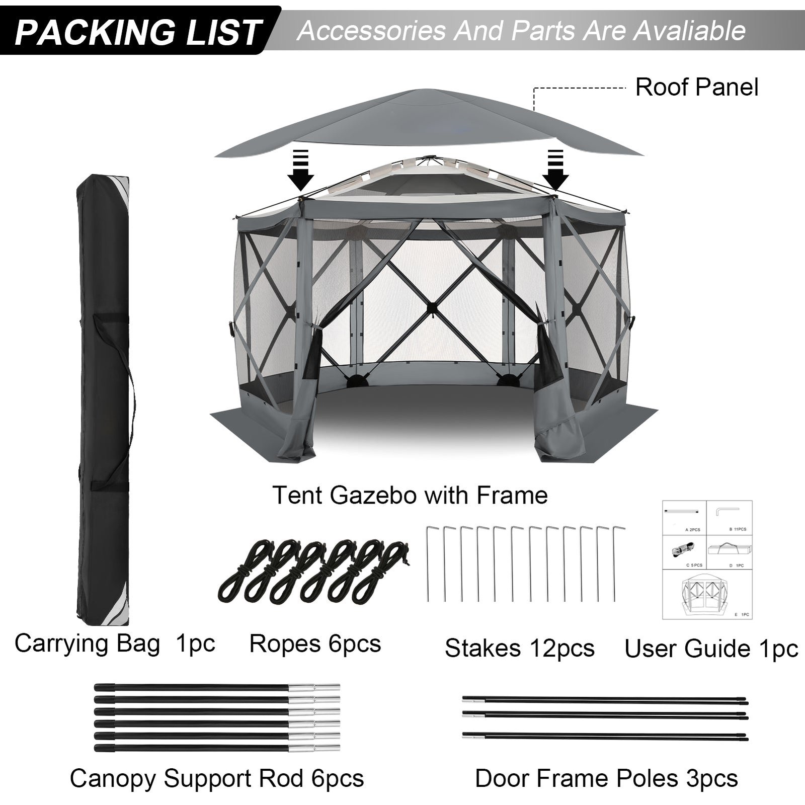 - 【Everything You Need】: The package of shielded gazebo tent includes a carrying bag, door poles, stakes, ropes and instruction manual, as well as If you have any questions or concerns, please visit our customer service center, we have excellent after-sales service