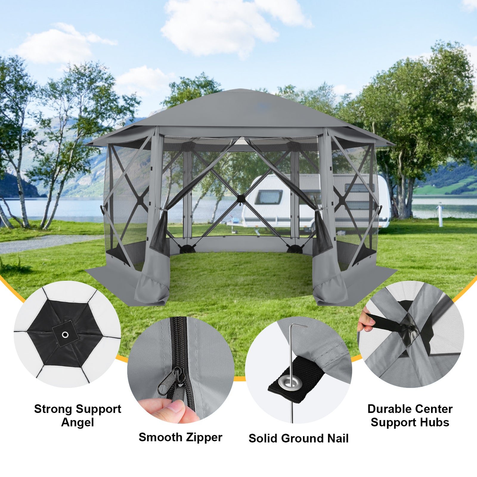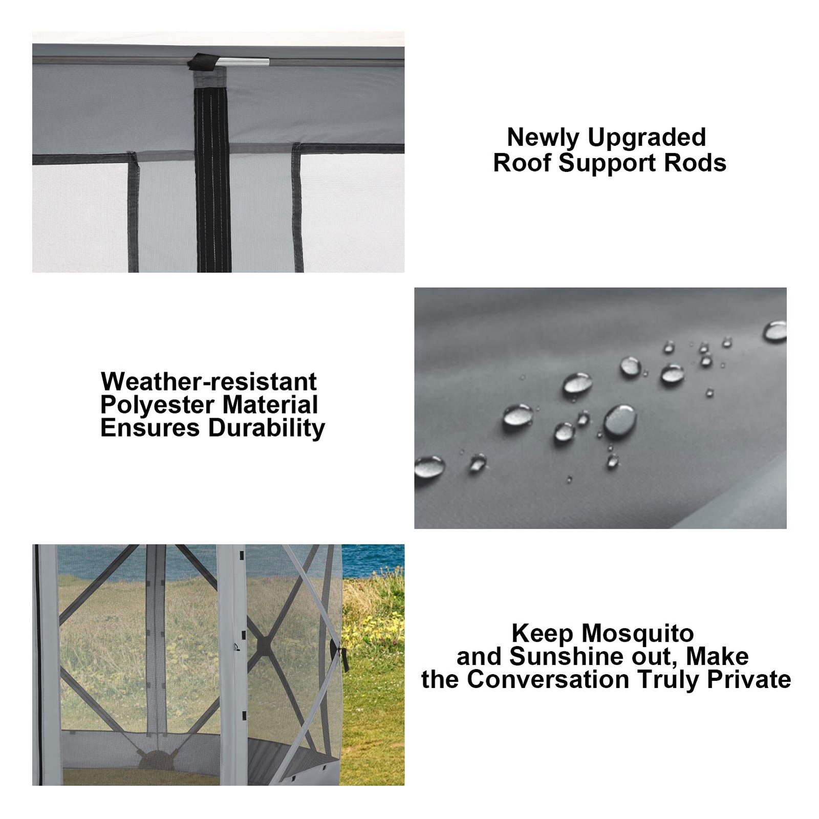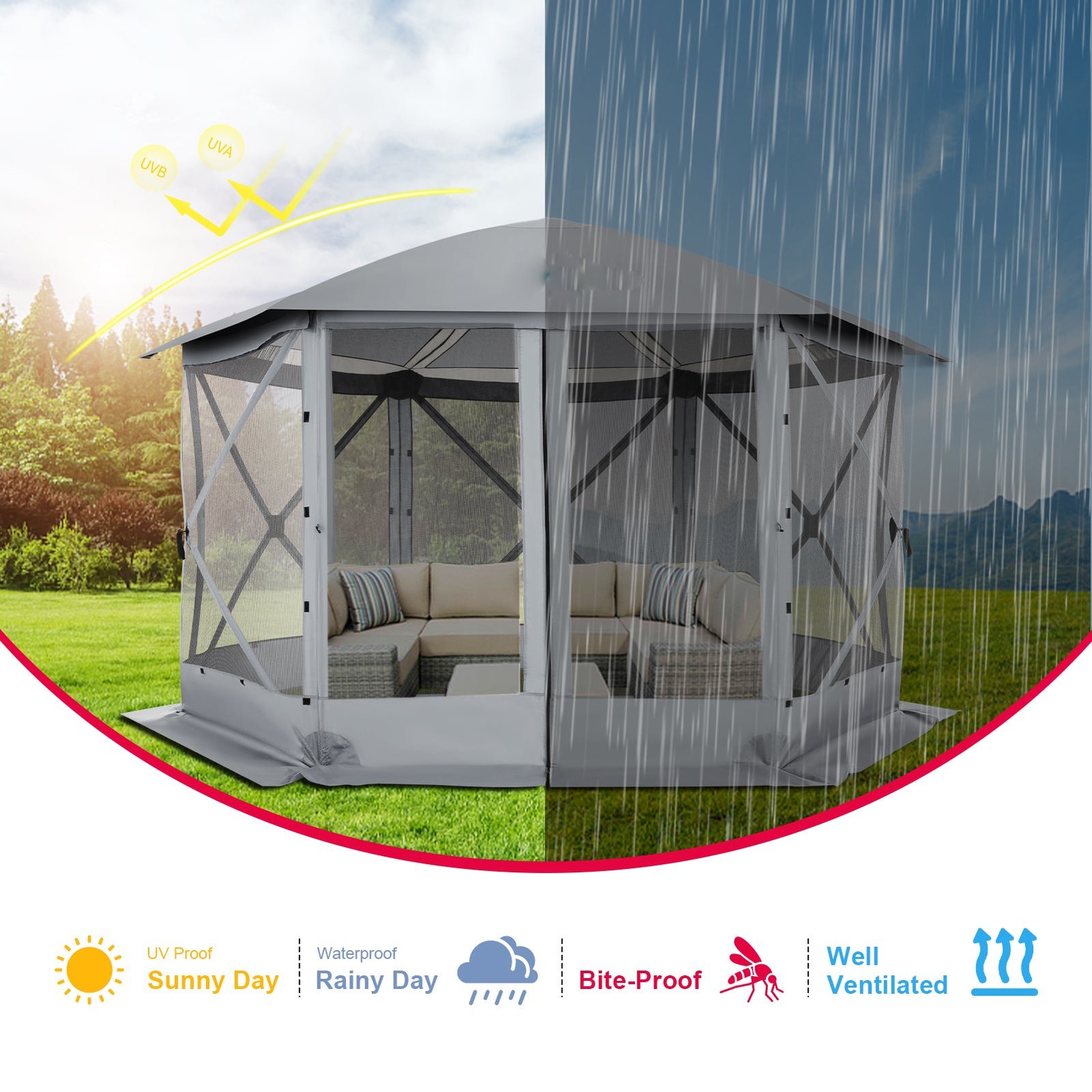 【Multi-functional】: our screen gazebo and pop-up gazebo are ideal for camping, backyard parties, picnics and outdoor markets, providing a versatile space for leisure activities with family and friends