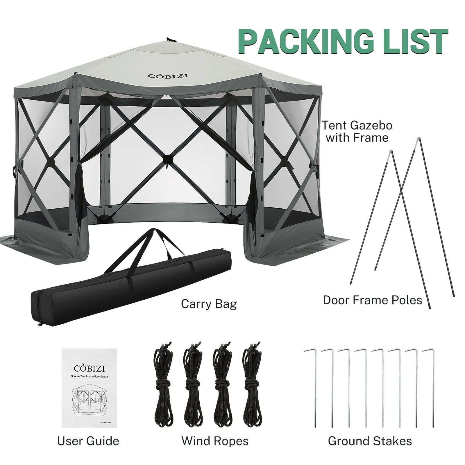 Everything You Need — The package of screened gazebo tent includes a carrying bag, door post, stakes, ropes and instruction manual, plus access to our customer service center for any questions or concerns.