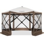 Hoteel 10x10ft Camping Gazebo Screen Tent, 5 Sided Pop-up Canopy Shelter with Mesh Windows, Portable Carry Bag, Stakes, Waterproof, UV 50+, Large Shade Tents for Outdoor Camping, Backyard, Gray,Blue,Khaki,Brown