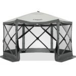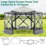 Spacious and Comfortable — This 12 x 12-foot screen tent for camping has plenty of room for up to 10 people and furniture, with a high ceiling that provides ample headroom. This screened in canopy with hub design Pop-up structure frame, very easy to set up and take down in 40 seconds.