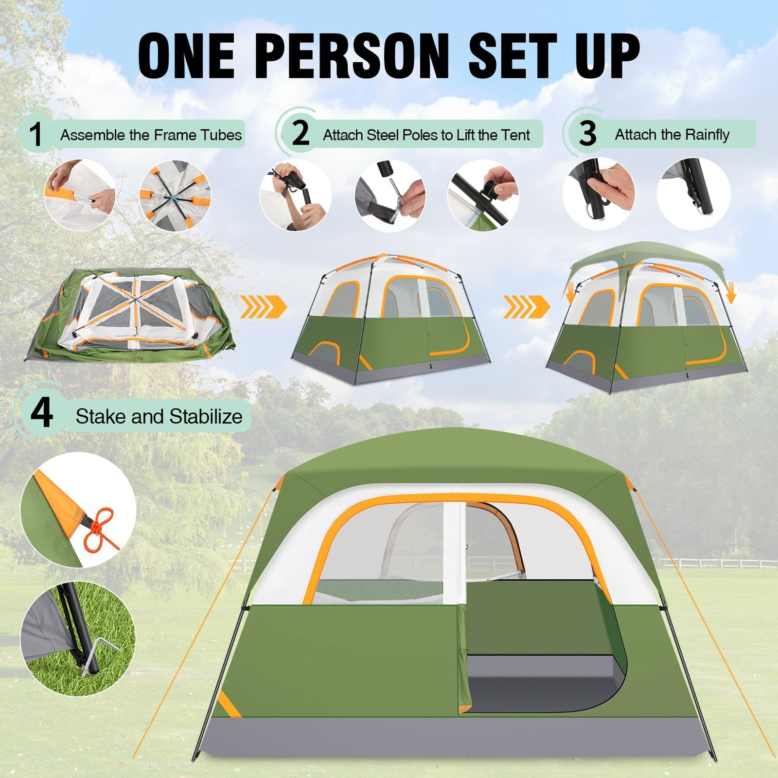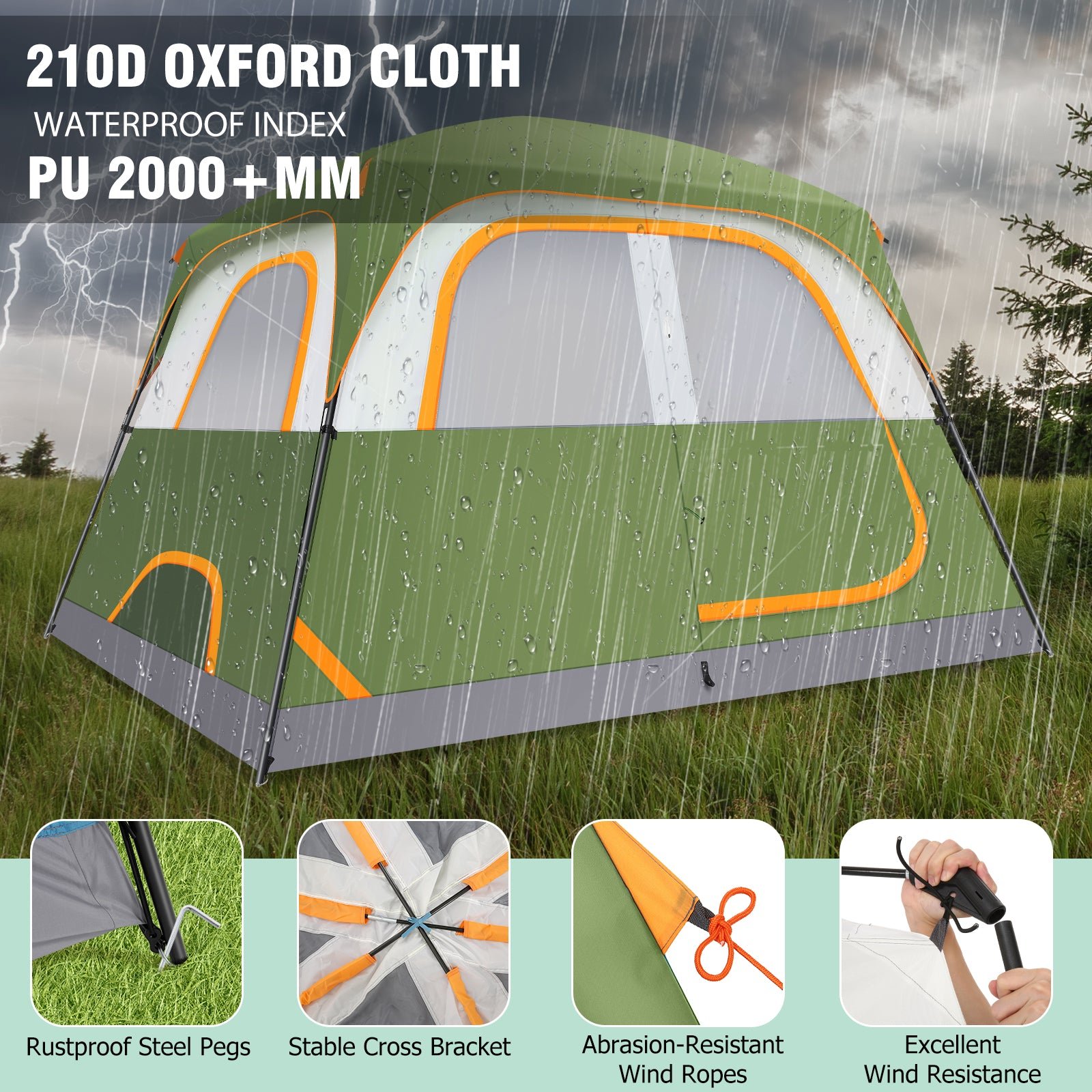 【Quick and Easy Setup】This 6-person tent can be assembled in just 5-8 minutes without any external tools, making it perfect for novice campers and last-minute adventures.