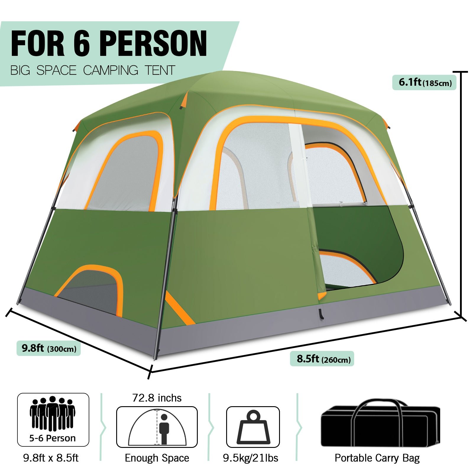 HOTEEL 6 Person Tent for Camping, Easy Setup Camping Tent with Rainfly & Screen Windows for Camping/Traveling/Family Gathering/Hiking/Beach