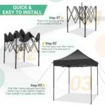 ✅【Easy Set-up】A Person can quickly set up the pop up canopy tent without any tool, which only takes 5 minutes. We will offer a portable carry bag for storage the outdoor tent. The size of the bag is 57×7.8×7.8 inches, suitable for transport.