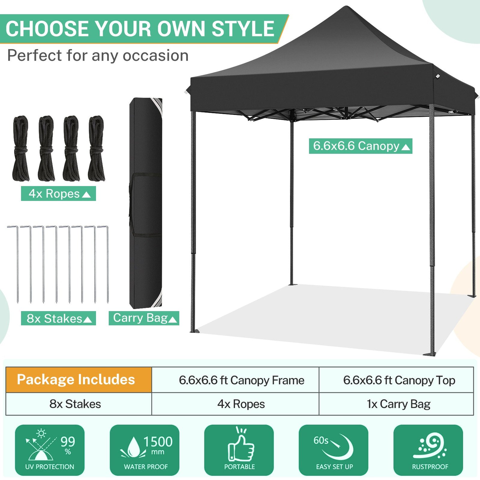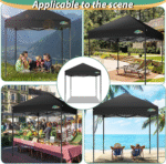 ✅【Dimension】The outdoor canopy has a 42 sq ft shading area and 3 adjustable heights, 6.9ft/7.2ft/7.5ft. You can adjust the height of the pop up gazebo according to your needs.
