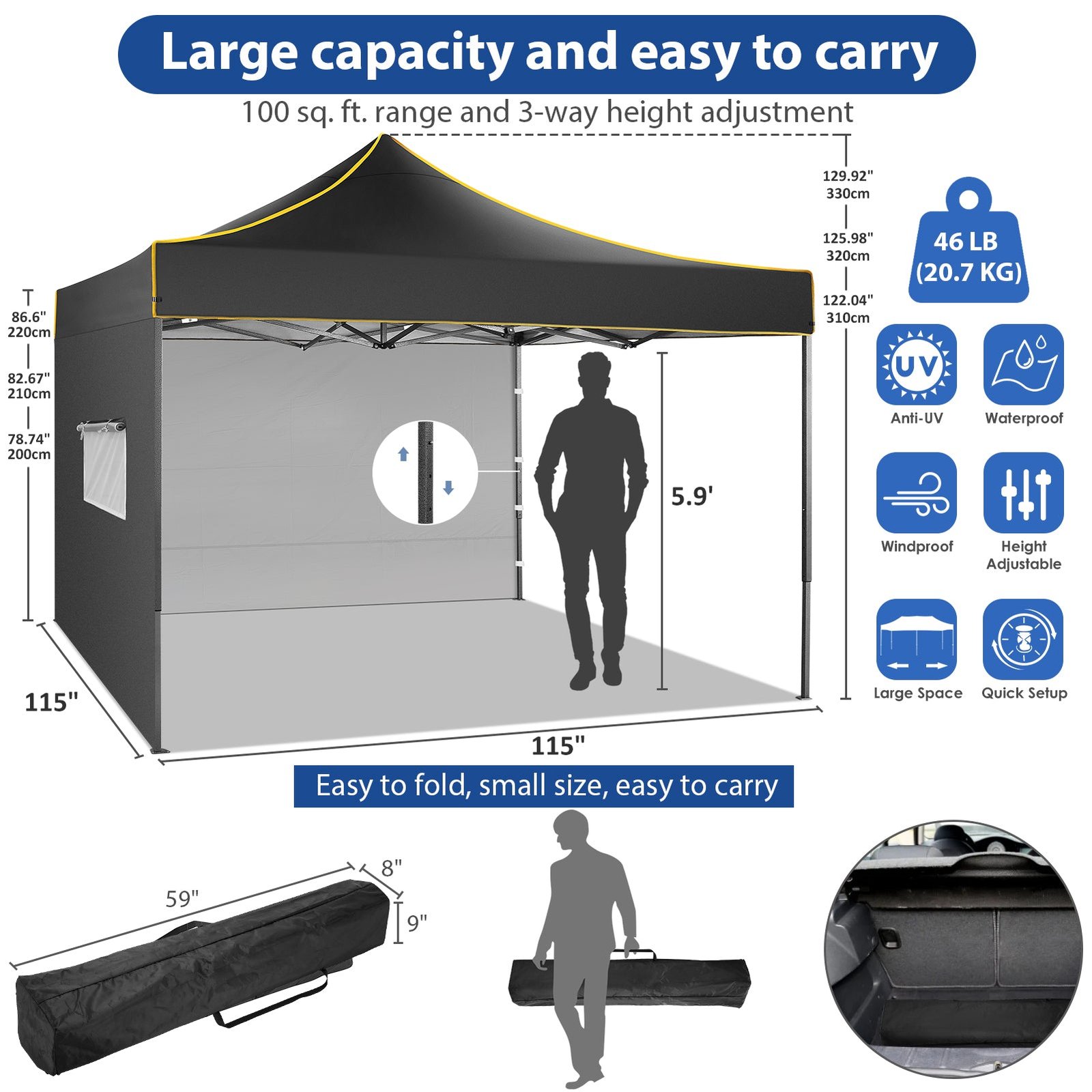 HOTEEL Canopy Tent 10×10 Pop Up Canopy,Outdoor Easy Up Canopy With Sidewalls,Portable Event Tent for Backyard,Parties,Camping,Commercial,Black