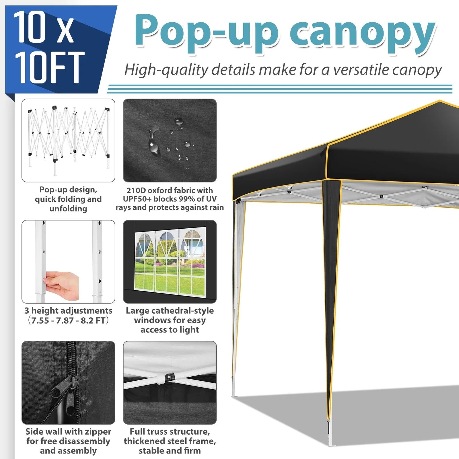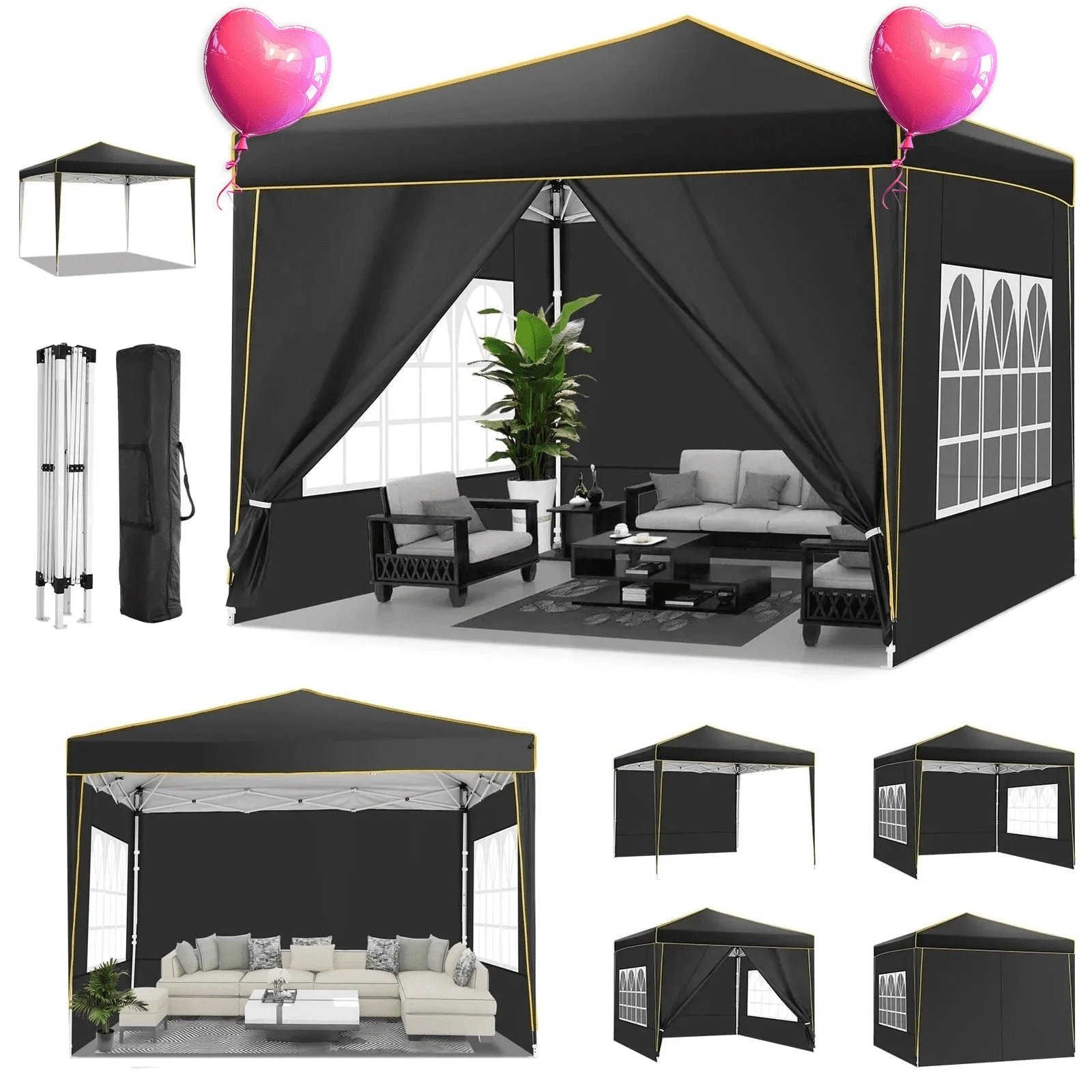 HOTEEL Pop up Canopy Tent 10×10 Commercial Instant Canopy with 4 Sidewalls & Carry Bag,Portable Tent for Parties Beach Camping Party Event Shelter Sun Shade