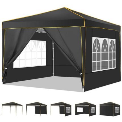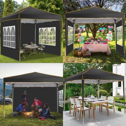YUEBO 10’x10′ Outdoor Pop Up Canopy Tent Commercial Instant Canopies Heavy Duty Shelter with Roller Bag, Bonus 4 Sand Bags, 4 Removable Sidewalls & Carrying Bag for Wedding Picnics Camping (Black)