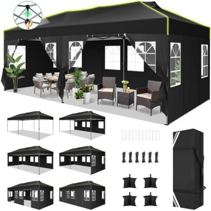 HOTEEL 10×20 Pop up Canopy Tent with 6 Sidewalls, Canopy for Outside Instant Waterproof Party Canopy Tent for Beach Garden Party Camping Outside with Air Vent,Reflective Strip,4 Sandbags