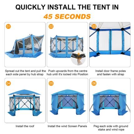 Hoteel 12x12ft Pop-up Camping Gazebo, Camping Gazebo Screen Tent with 6 Sidewalls and Mosquito Netting, Portable Carry Bag, Waterproof, UV 50+, Large Shade Tents for Outdoor Camping, Backyard